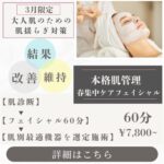 【3月限定】春のゆらぎ肌対策|レスキューフェイシャルのご案内 いつもご来店ありがとうございます。銀座店をご利用いただいているお客様へ、リピーター様限定の春ケアメニューをご用意しました🌸 🌿 春は肌が一番ゆらぐ季節 3月は・花粉・… 続きはこちら 2026/02/28